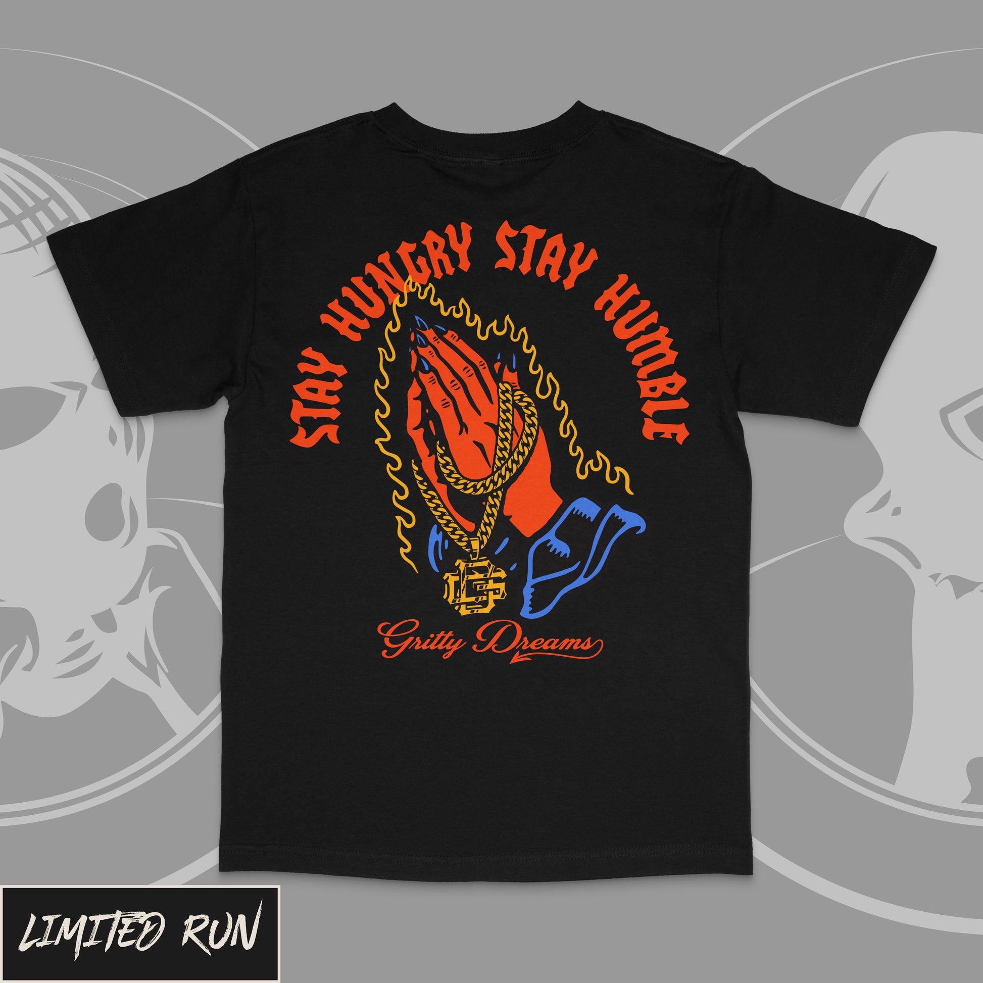 The Pray For Me Tee is for anyone who came up the hard way and knows success doesn’t mean forgetting your roots. The bold, screen-printed graphic features praying hands locked around a Gritty Dreams monogram chain — a symbol of the hunger that got you here and the balance it takes to stay grounded when life starts to level up.